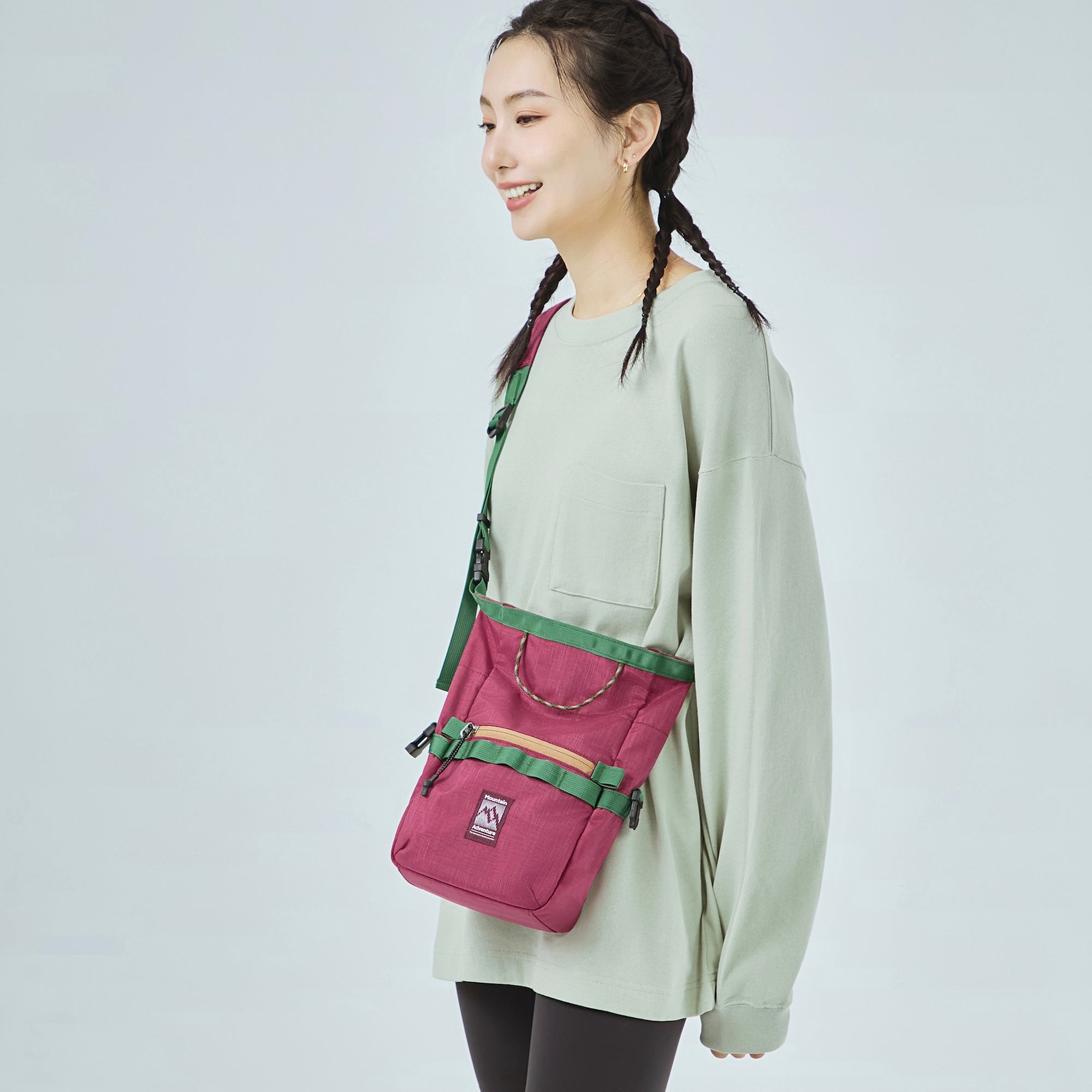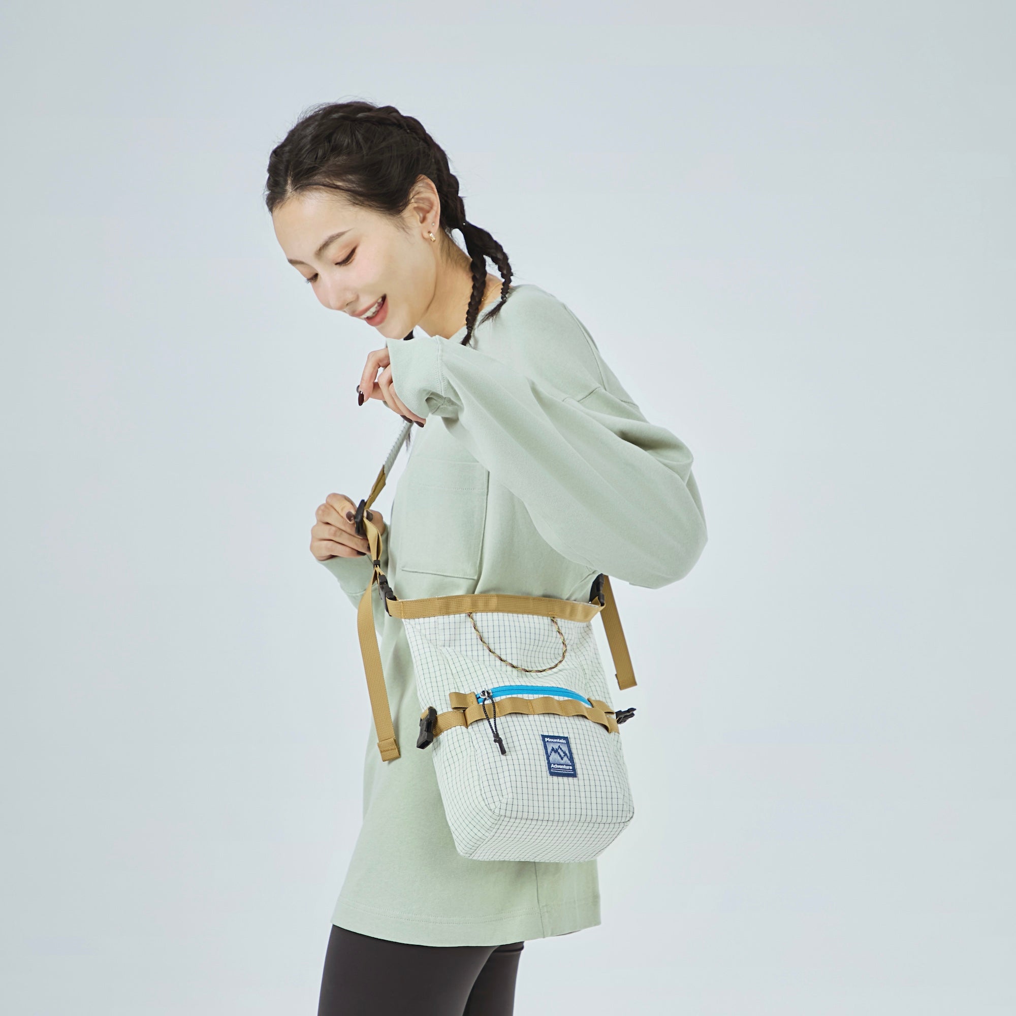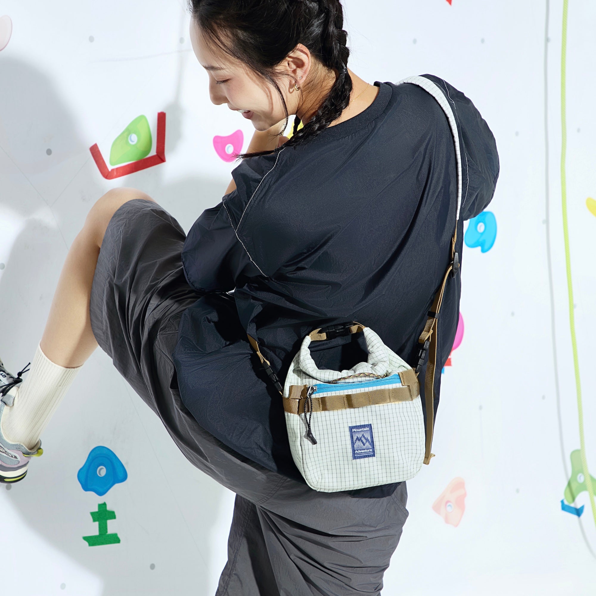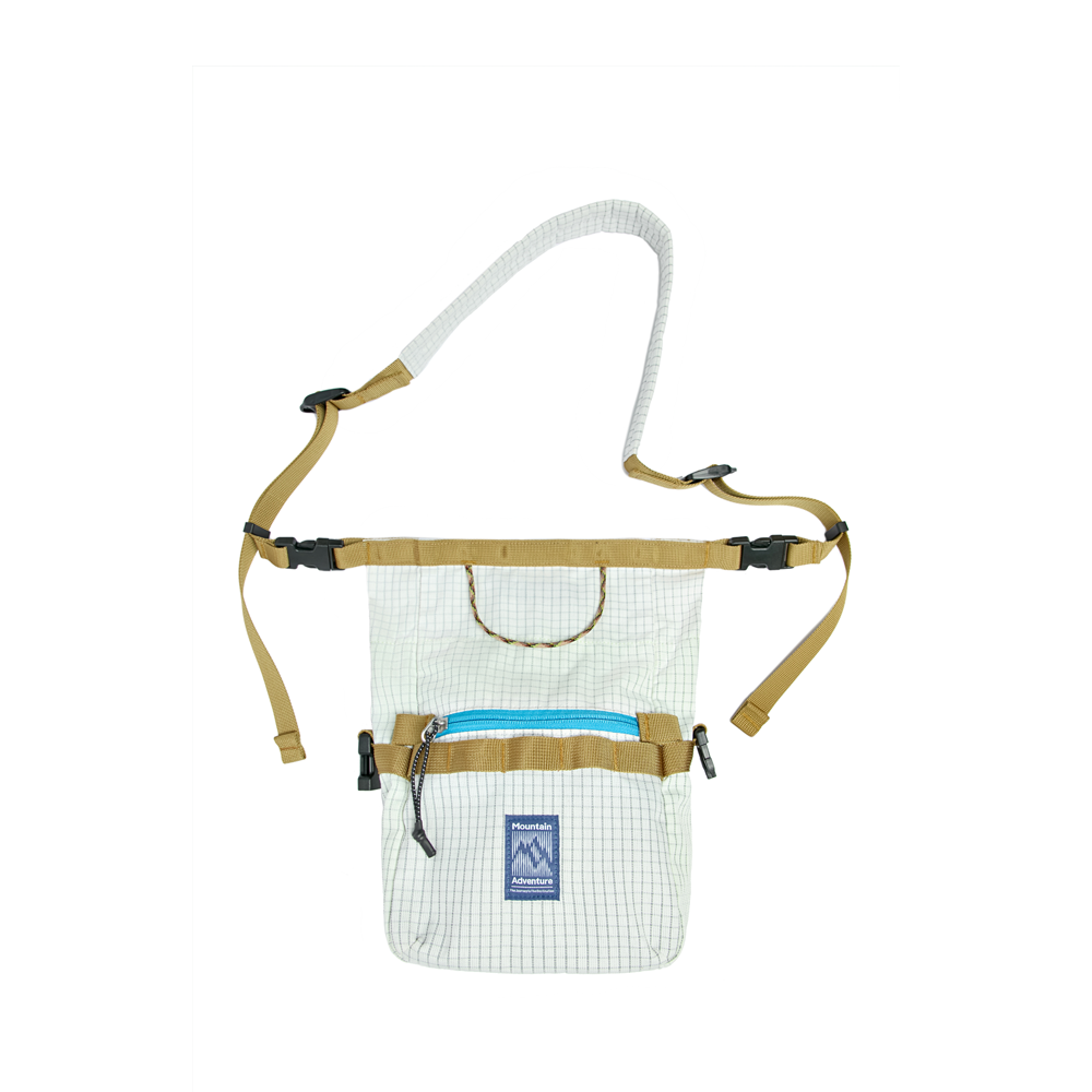Inspired by the climbing chalk bag, this sling retains its classic form and attachment features. Enhanced with a versatile strap and refined details, it seamlessly transitions from the gym to daily life.