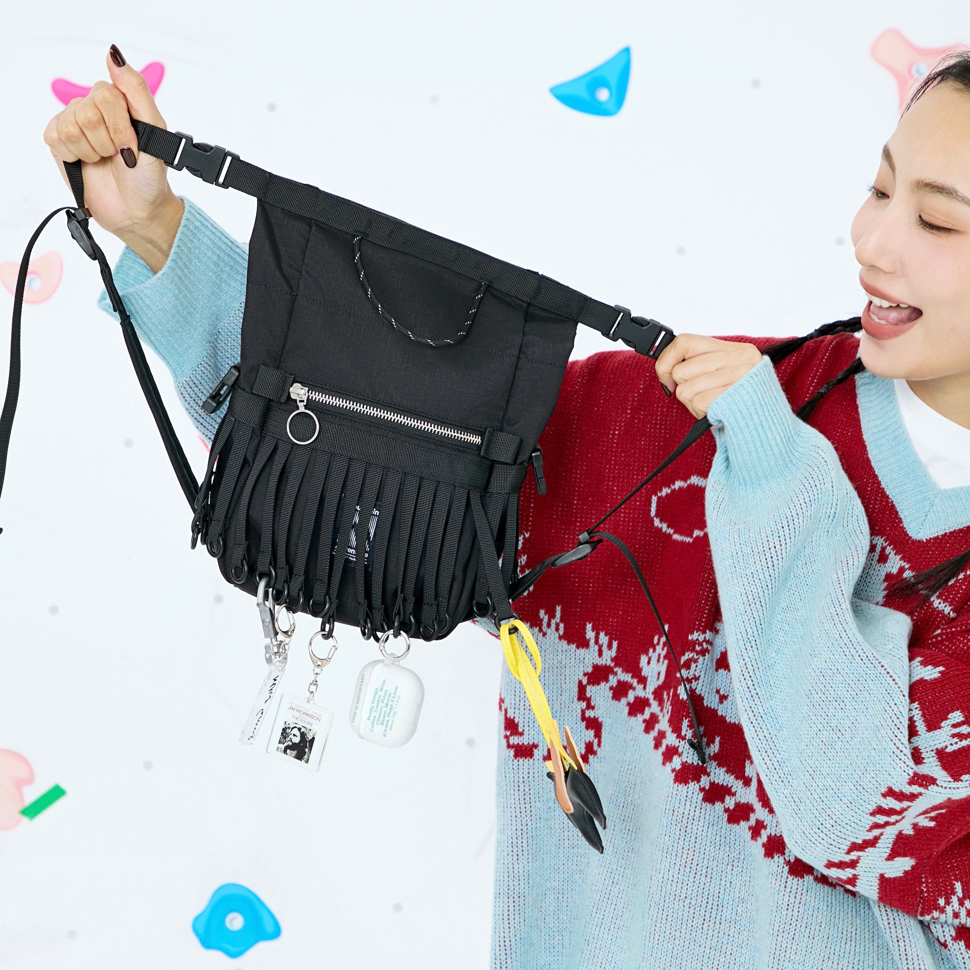 Webbing and rings cascade down the bag, creating flowing lines that move with you. The fringe design captures the dynamic beauty of a running horse, embodying the confident stride of the Year of the Horse.